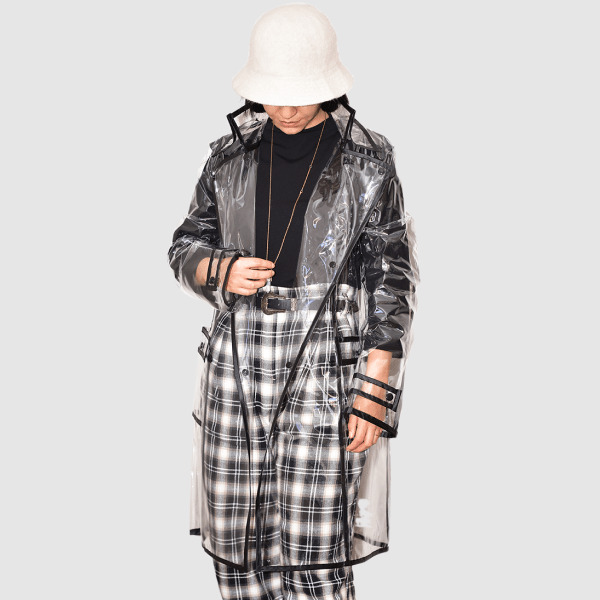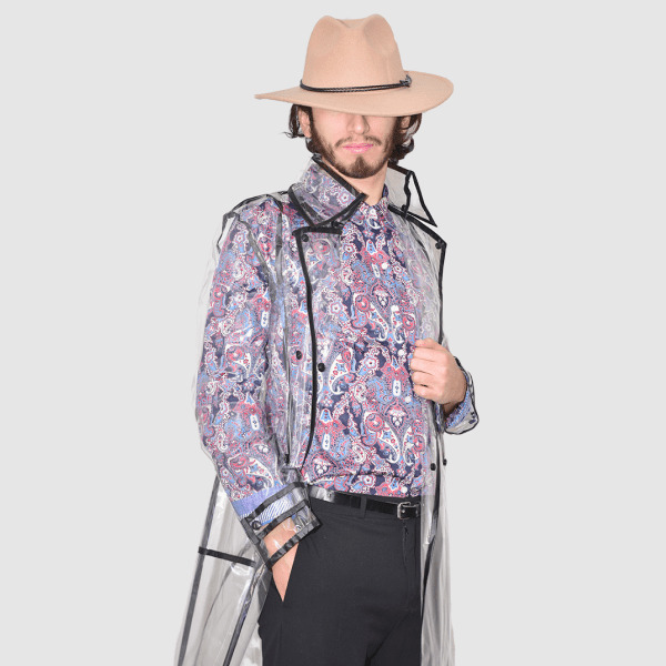 ¡Compra la tuya hoy! Protección completa! Diseñadas para que la utilices sobre tu ropa. Nuestras chaquetas tienen un diseño exclusivo y son elaborados a mano uno por uno. Chaqueta antifluidos larga, de cuello cruzado con bordes negros. Incluye una correa transparente de 2.5cm de ancho y un broche transparente de PVC. Se puede cerrar al medio, cuenta con broches tipo clic para el mínimo contacto. Trae una capucha removible con broches tipo clic. El material utilizado principalmente es el TPU, un material eco-responsable, súper resistente.